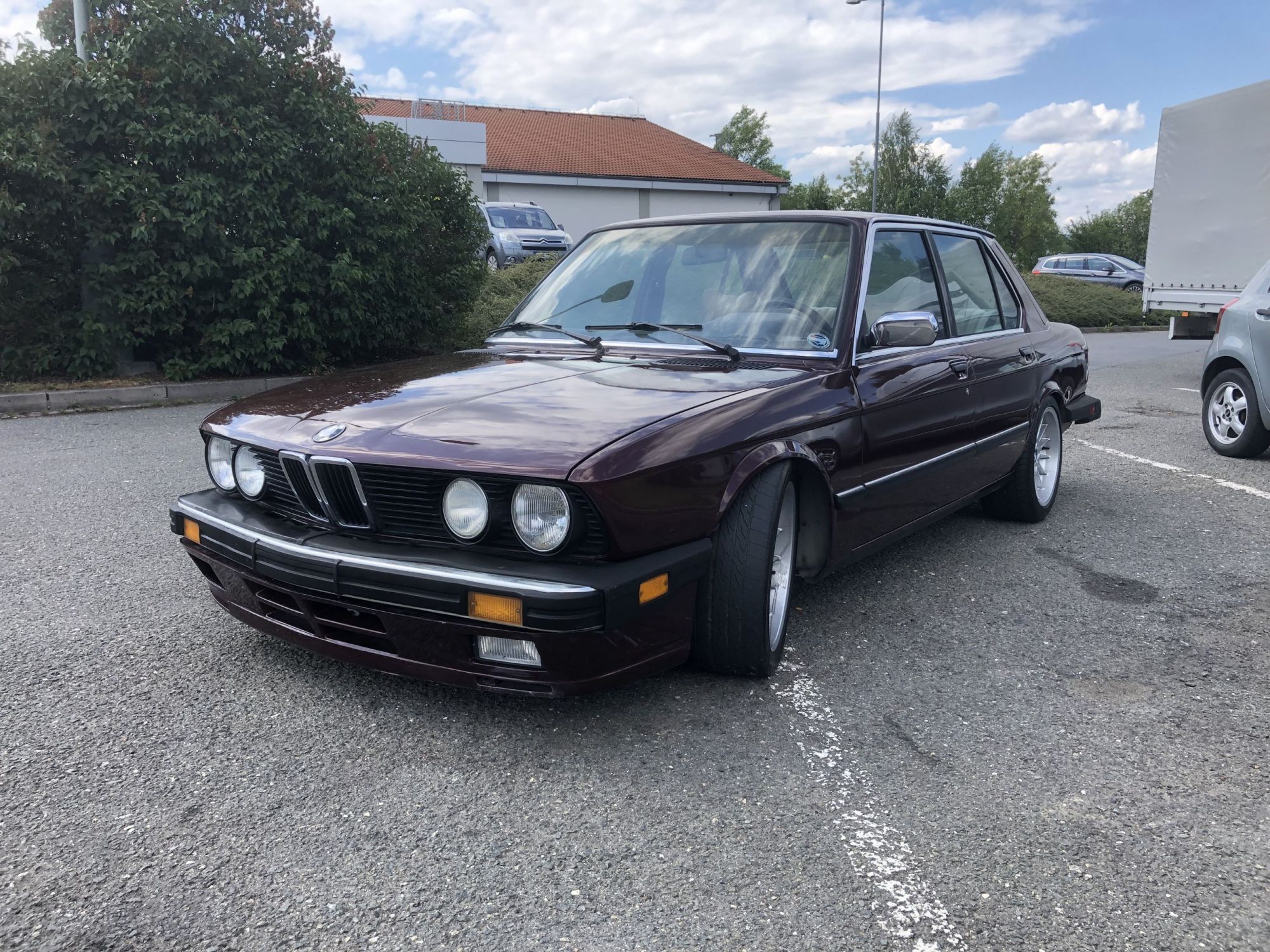 This 1984 BMW 528e with desirable manual transmission, in beautiful condition, looks and drives great. Fully optioned example - complete electrical equipment, A/C, cruise control, shifter, etc. Very nice interior and paintwork. Alpine + Diamond Audio sound system, lowered chassis, 17" BMW alu rims.